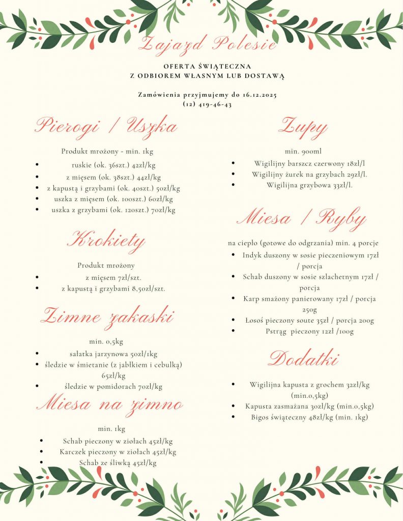 Oferta świąteczna z dowozem i odbiorem osobistym 2025!